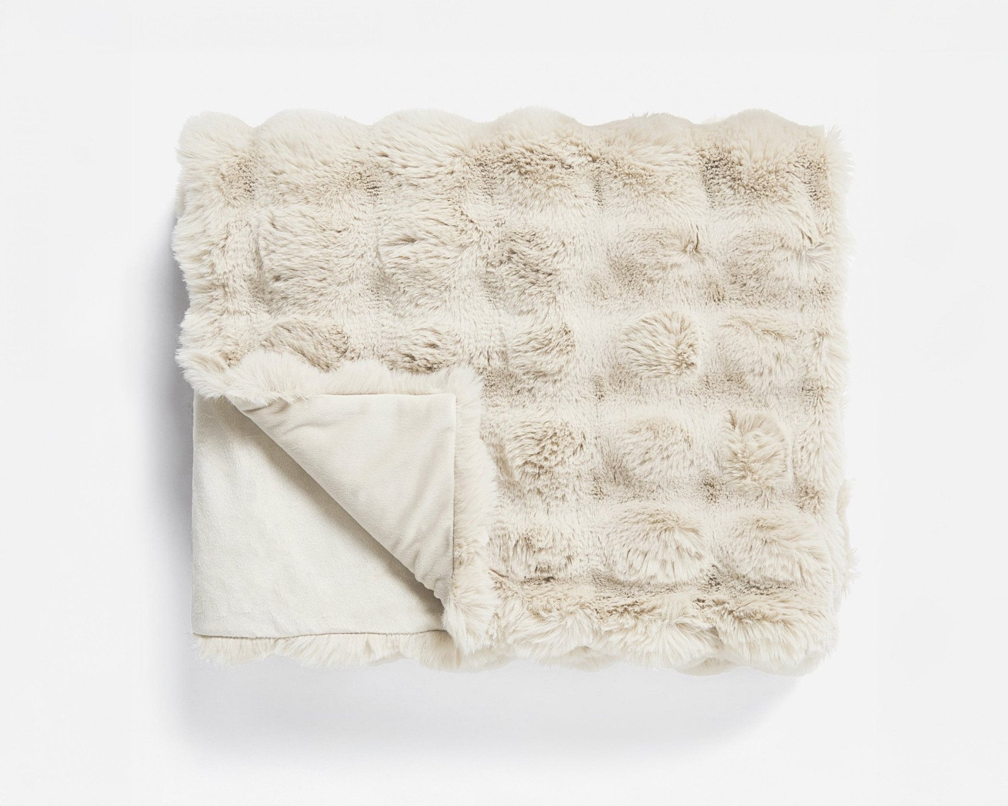 Pom Rabbit Fur Plaid Beige 150x200 cm – Luxe Imitatie Konijnenbont met Velvet Achterzijde